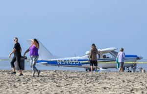 The emergency landing occurred on the beach between Lifeguard Towers 11 and 13 around 9:30 p.m. Thursday, Oct. 23, after the airplane was unable to make it to John Wayne Airport, Carson said.