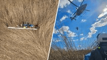 Two people were rescued after their aircraft crashed into marsh near Rainbow’s End Airport in Salem County, New Jersey, on Saturday, Oct. 25, 2025, police said.