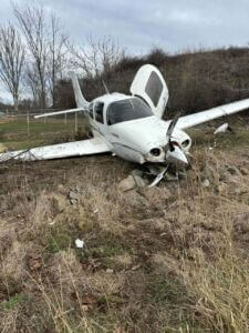 Initial reports say the brakes on the plane were reported to have failed which caused the plane to skid off the runway over a small embankment. The FAA learned that the plane, a Cirrus SR22, was traveling to Kentucky from New Jersey.