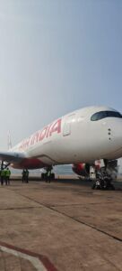 One of the engines of an Air India A350 on