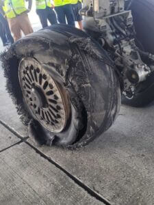 forced to make an emergency landing at the airport on Tuesday morning after one of its tyres blew out shortly after takeoff, airport officials confirmed.