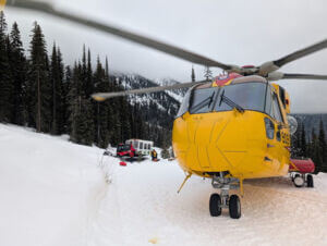 Nelson Search and Rescue worked alongside a local tour operator to get the two injured parties down via toboggan to a lower elevation, so CH-149 Cormorant could safely land and transport them to the hospital.