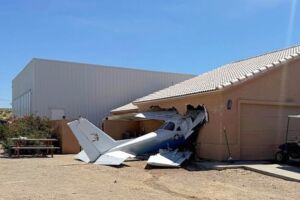The Cessna T-41B plane “veered off the runway” at the Sun Valley-Bison-Fort Mohave Airport and crashed right into a home’s garage in Fort Mohave just before noon, according to the Federal Aviation Administration.