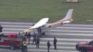 7Skyforce captured the Cessna 82R on a runway surrounded by Pembroke Pines Police and Fire Rescue vehicles, just after 12:30 p.m. on Monday.